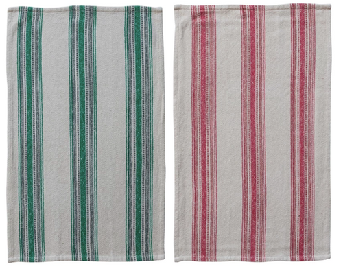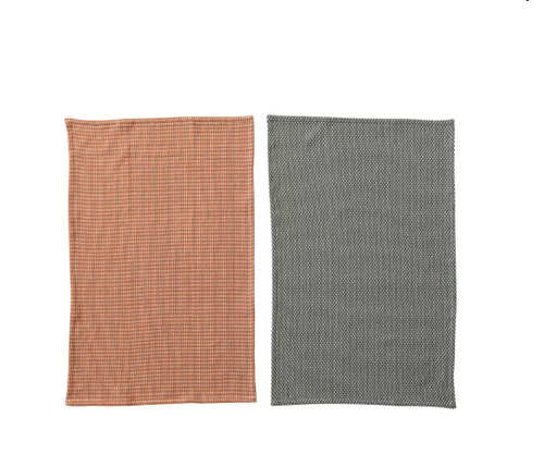Woven Cotton Dobby Tea Towels, Orange & Charcoal Color