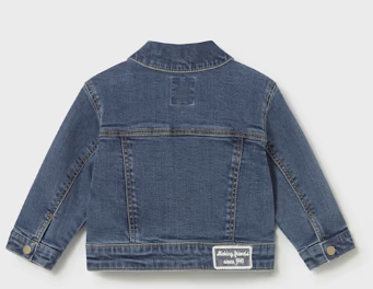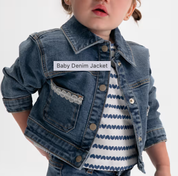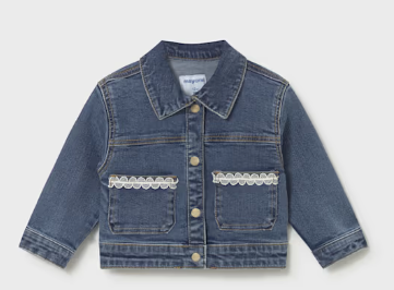 Dark Baby Denim Jacket with White Lace trim on the pockets.