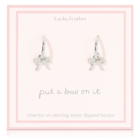 Unleash your inner fashionista with the Beautiful Bows - Bow Charm Hoops from Lucky Feather. These hoop earrings are an exquisite blend of style and charm, making them a must-have addition to your jewelry collection. Whether you're dressing up for a special occasion or adding a touch of elegance to your everyday look, these hoops are sure to turn heads. Crafted with love and good energy, just like every piece from Lucky Feather. Elevate your style today with these captivating bow charm hoops. Available in Gold or Silver.