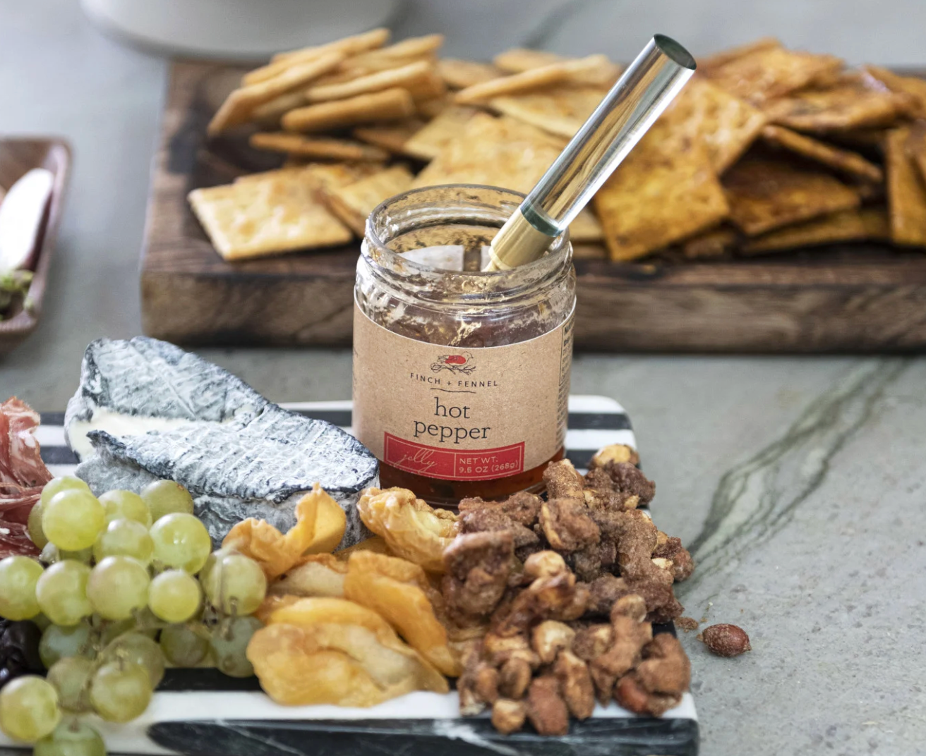 Beautiful in color and sweet with heat! Our hot pepper jelly pairs perfectly with crackers and cream cheese or spread on a biscuit. Hot pepper jelly is always a hit, no matter how you serve it. Be sure to scan the QR code for more inspiration and recipes.