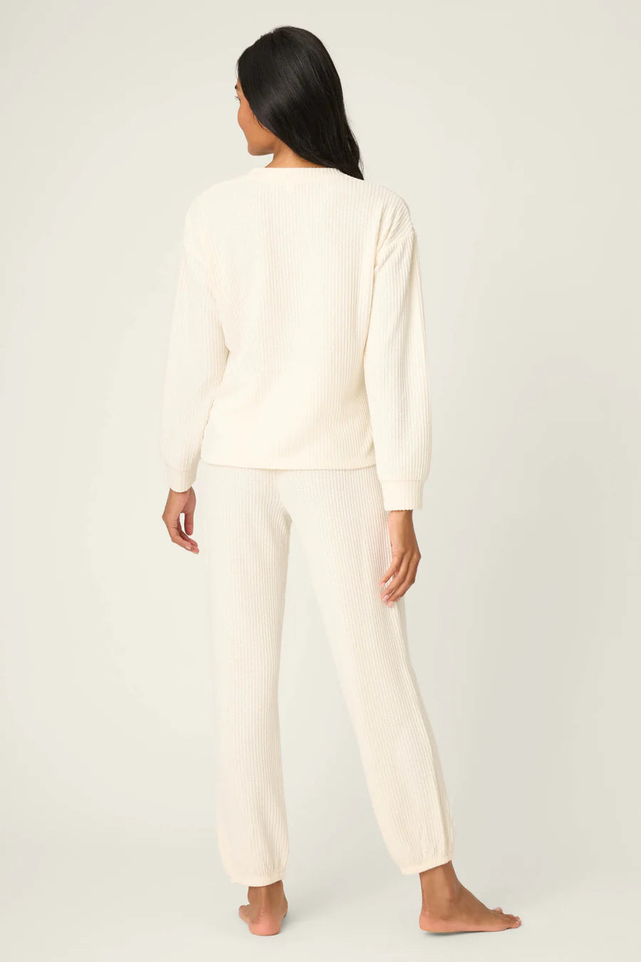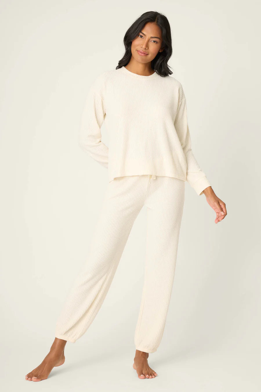 Shine bright by the fire in this natural beige brushed thermal pajama set, woven with subtle sparkle for a festive finish. The long-sleeve crew top has a relaxed fit and ribbed trim, while the drawstring pants feature banded cuffs—made for holiday lounging, gift wrapping, or late-night toasts.