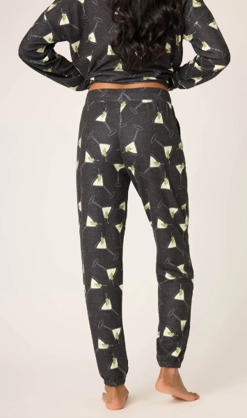Toast the season in comfort. These jogger-style pajama pants and comfy long sleeve are crafted from peachy-soft knit with a festive martini glass print, complete with green olives. The drawstring waist and banded cuffs keep them snug for long winter nights in.