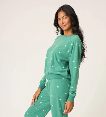 For nights that call for hibernation mode. This piece scattered with tiny bear motifs..  Crafted in soft vintage fleece, it's made for cozying up all season—whether you’re lounging on the couch or curling up for a nap.