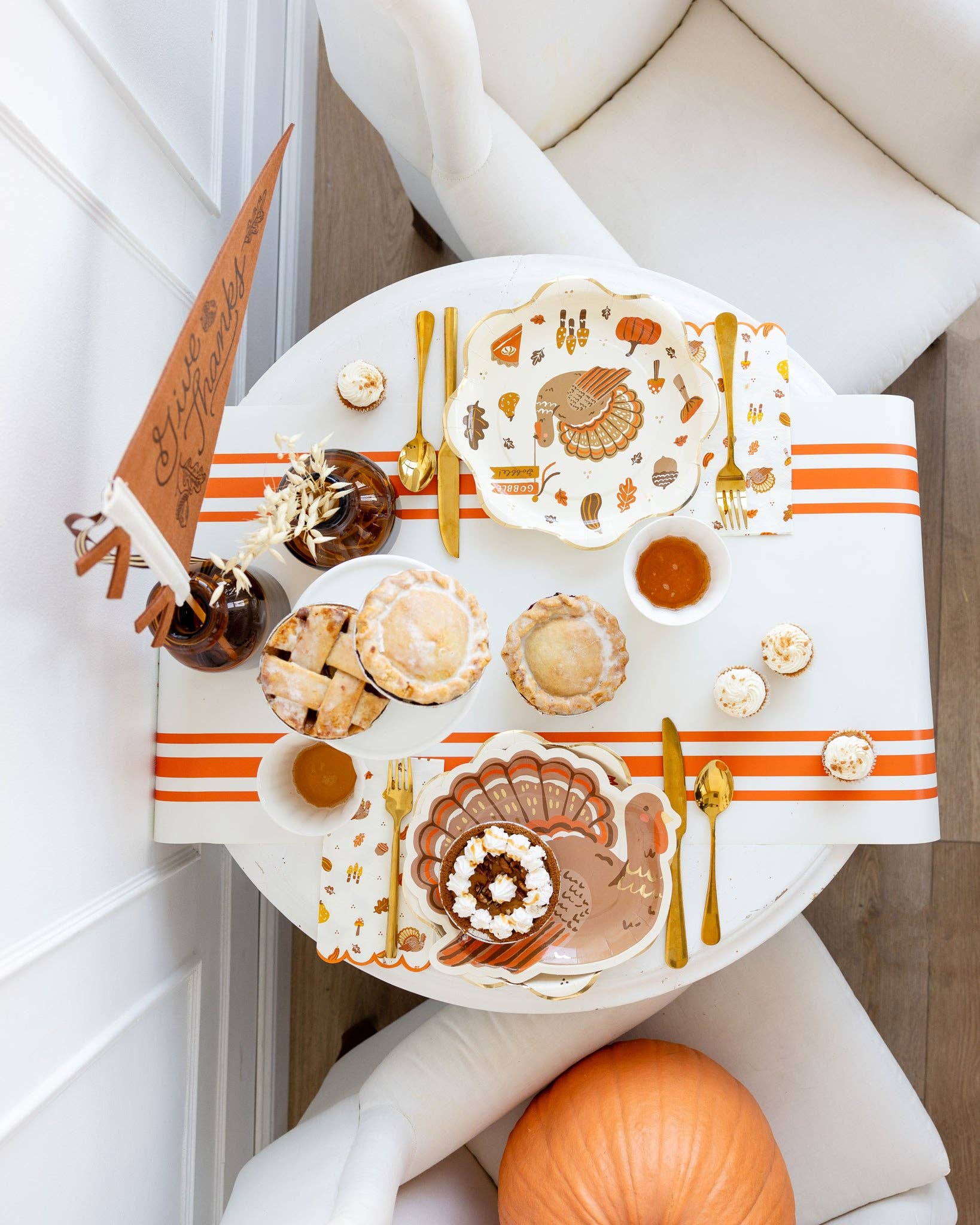 Celebrate Thanksgiving with our festive Turkey Shaped Plate! Perfect for serving your delicious dinner in style, this 10" plate adds a fun touch to any party. Show off your love for Thanksgiving with this unique plate, sure to make your guests smile. • includes 8 shaped paper plates • 10 x 8.5 inches • gold foil