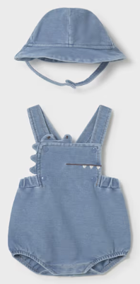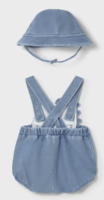 Baby Boy Blue Dragon One-Piece Overalls with Bucket Hat Set