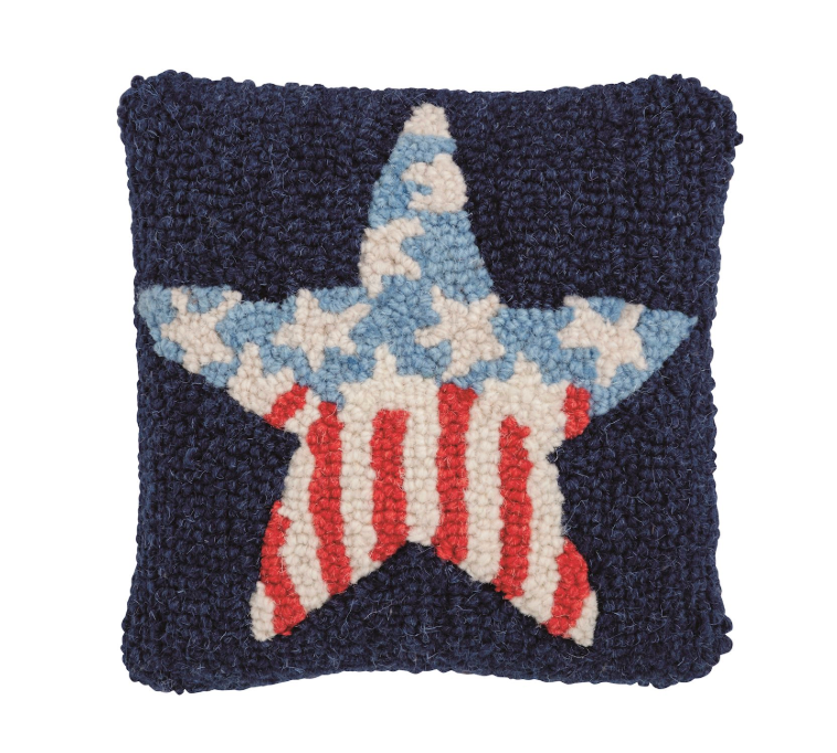 Mini woven hooked wool pillow with canvas backing. Perfect for 4th of July, Memorial Day, and all year long! Such cute decor for your home, or for a hostess gift.